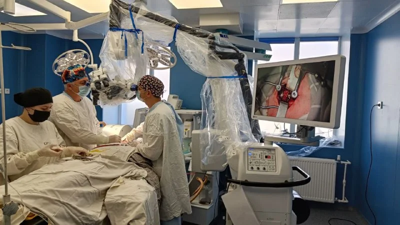 Как рассказали в медучреждении, этот аппарат предназначен для оказания высокоспециализированной помощи пациентам с сосудистыми патологиями спинного и головного мозга, онкологией. Ключевыми преимуществами микроскопа являются беспрецедентное качество изображения и высочайшая точность управления. Оптическая система транслирует изображение одновременно на три тубуса, обеспечивая возможность одновременной работы трех хирургов с использованием трех независимых модулей визуализации. Высокоточная оптика позволяет визуализировать даже самые тонкие сосуды и мельчайшие анатомические структуры мозга с исключительной четкостью. Компактность и мобильность конструкции обеспечивают удобство перемещения и использования микроскопа.